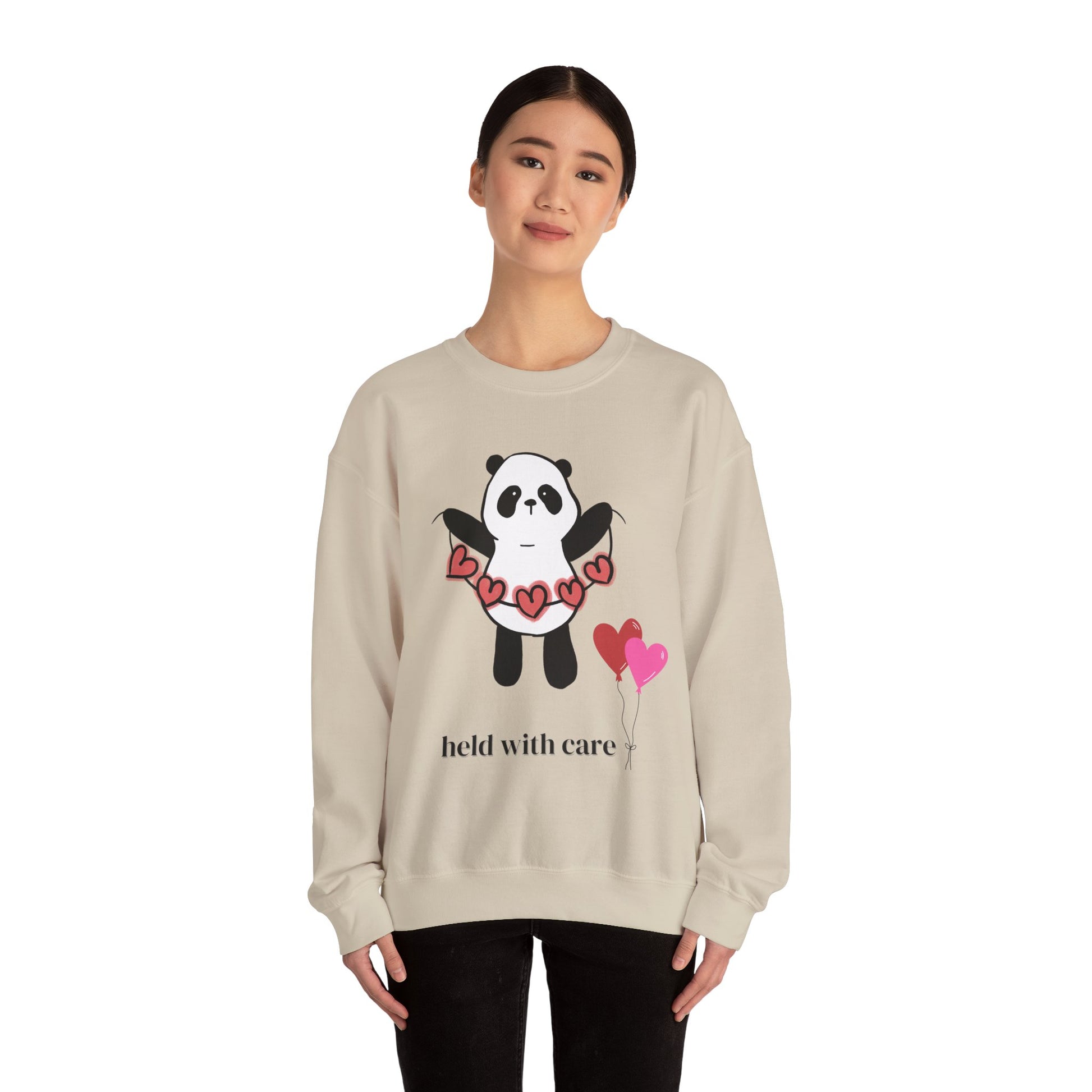 Sudadera de cuello redondo "Held With Care Panda": un regalo acogedor de Año Nuevo
